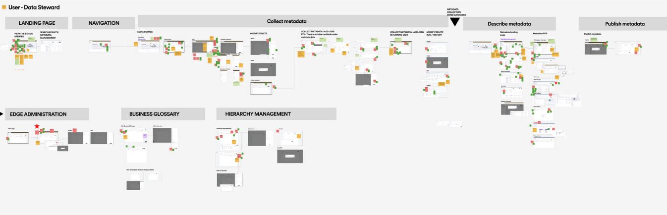 To understand the current structure and user flow of the platform, analyzed the existing information architecture (IA). This helped uncover how data sets, tools, and functionalities were organized and accessed by both data scientists and business users.